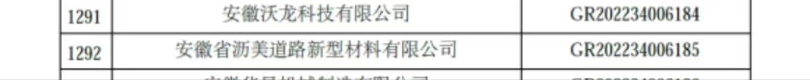 2022年12月26日,安徽省瀝美道路新型材料有限公司通過了由科技廳、財(cái)政廳和稅務(wù)機(jī)關(guān)組織的高新技術(shù)企業(yè)認(rèn)定,并榮獲“高新技術(shù)企業(yè)”稱號(hào)。